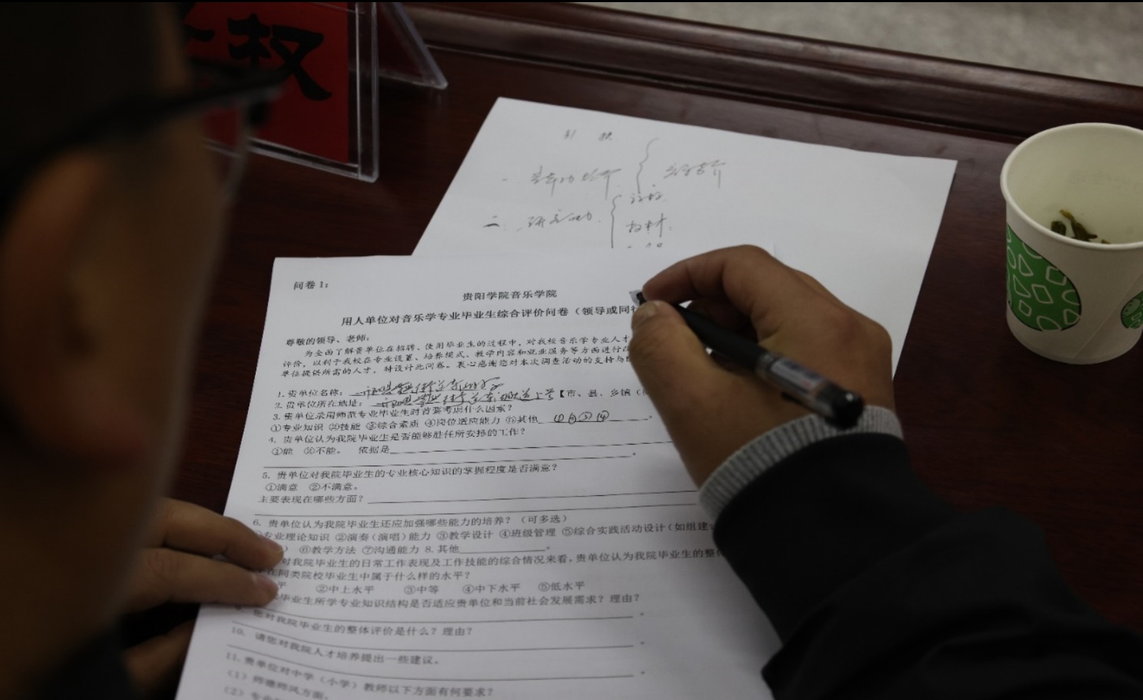 会议结束后开阳县紫兴街道东湖小学的领导及教师认真填写调查问卷,并同与会教师进行单独交流访谈。