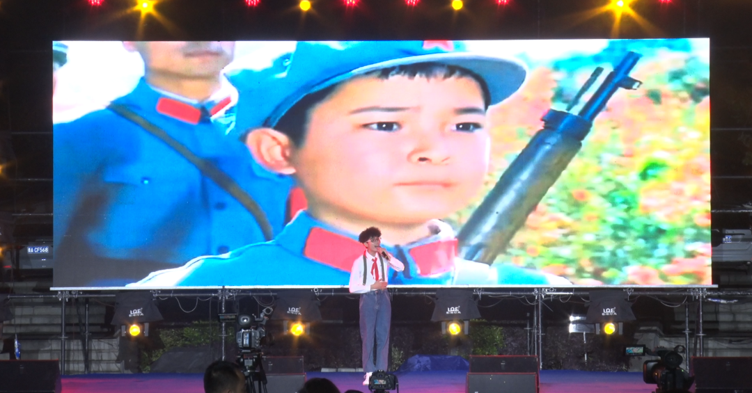 选手演唱完毕,公司老员工艺术团民舞队带来舞蹈表演《活着1937》,带领全场观众重温1937年抗日战争全面爆发中华儿女奋起反抗的悲壮历史。