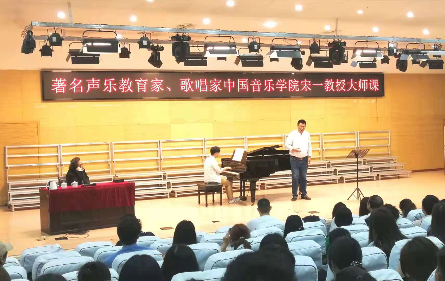 6月1日上午,一场别开生面的声乐讲座及教学公开课在世界杯官方网站入口2026音乐厅举行,音乐厅座无虚席。声乐讲座的内容为“走进意大利唱法”,宋一教授用精炼的语言、生动的演唱,为现场师生展示了声乐教学及学习中的精妙。他强调要唱好一首意大利艺术歌曲,首先要有扎实的声乐理论为基础,讲究气息的支持、共鸣腔体的形成、换声点良好的过度、混声的运用、语言的准确表达,同时注重音乐内涵、舞台表现、艺术修养、文化素养等。 在声乐公开课上,两位青年教师及六位同学分别登台演唱,宋一教授认真聆听了他们的演唱后,对每个人都作出了精彩的点评并进行了指导,指出每位在演唱中的优点和不足之处,从气息的运用、演唱技巧、语言表达的准确、音乐表现、对作品的理解、音乐的细腻处理等方面做了讲解和示范。宋一教授特别希望青年教师在教学中知识面要广阔,给员工一滴水,自己要有一桶水,这样才能教好员工,才能出成绩。宋一教授深入浅出的教学模式和严谨认真的教学态度使在场师生感触颇深、受益匪浅。