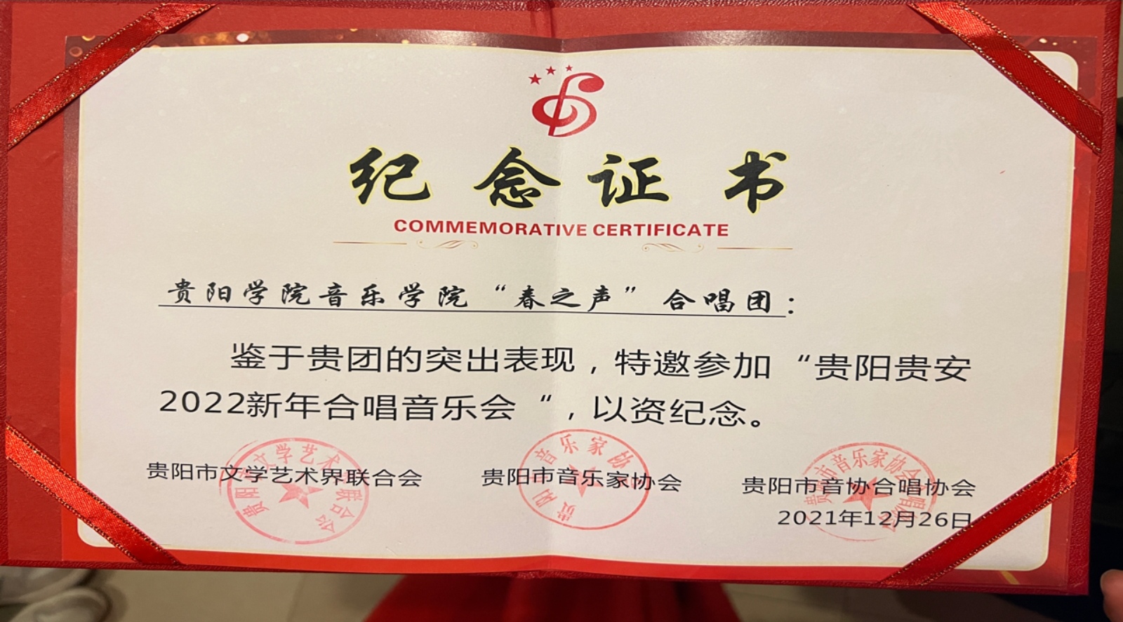 2021年12月26日晚,由中共贵阳市委宣传部、市文联主办,市音乐家协会、市音协合唱协会承办的“贵阳贵安2022新年合唱音乐会”在贵阳大剧院音乐厅举行。