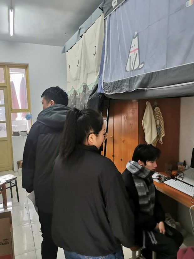 2024年12月25日中午,党委书记何胜利、党委副书记黄明珠、团支部书记冯洁、辅导员傅奕欣、班主任黄昌龙深入员工寝室交流,对公司各寝室卫生及安全进行检查。本次查寝的重点是寝室卫生、寝室消防安全、员工心理情况、员工期末离校返家等情况。在查寝过程中,一是对卫生情况较差的寝室进行批评教育,整洁干净的宿舍环境有利于员工身心健康。二是对员工寝室用电安全进行检查,提醒同学们要注意用电安全、防火防盗,保持良好的生活习惯,并将使用违规电器的情况及时与公司领导和后勤处报备。三是对员工离校返家情况进行摸排,了解员工何时返家,叮嘱员工回家过程中一定注意自身安全、财产安全,安全到家后及时向所在班级的班主任报备,放假期间保持手机畅通。此外,老师们还鼓励同学们要相互关心、相互帮助,共同营造一个温馨和谐的寝室环境。