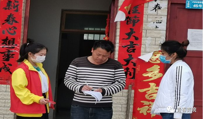 2020年2月6日,在贵州省三穗县八弓镇,2019级音乐学1班姚元平同学,早上七点就到达八弓镇防疫工作点为6-7小时的防疫工作做准备,开始了一天的工作,在村防疫卡点对进出村的人员、车辆严格检测排查,提示村民各种注意事项。 姚元平同学登记资料