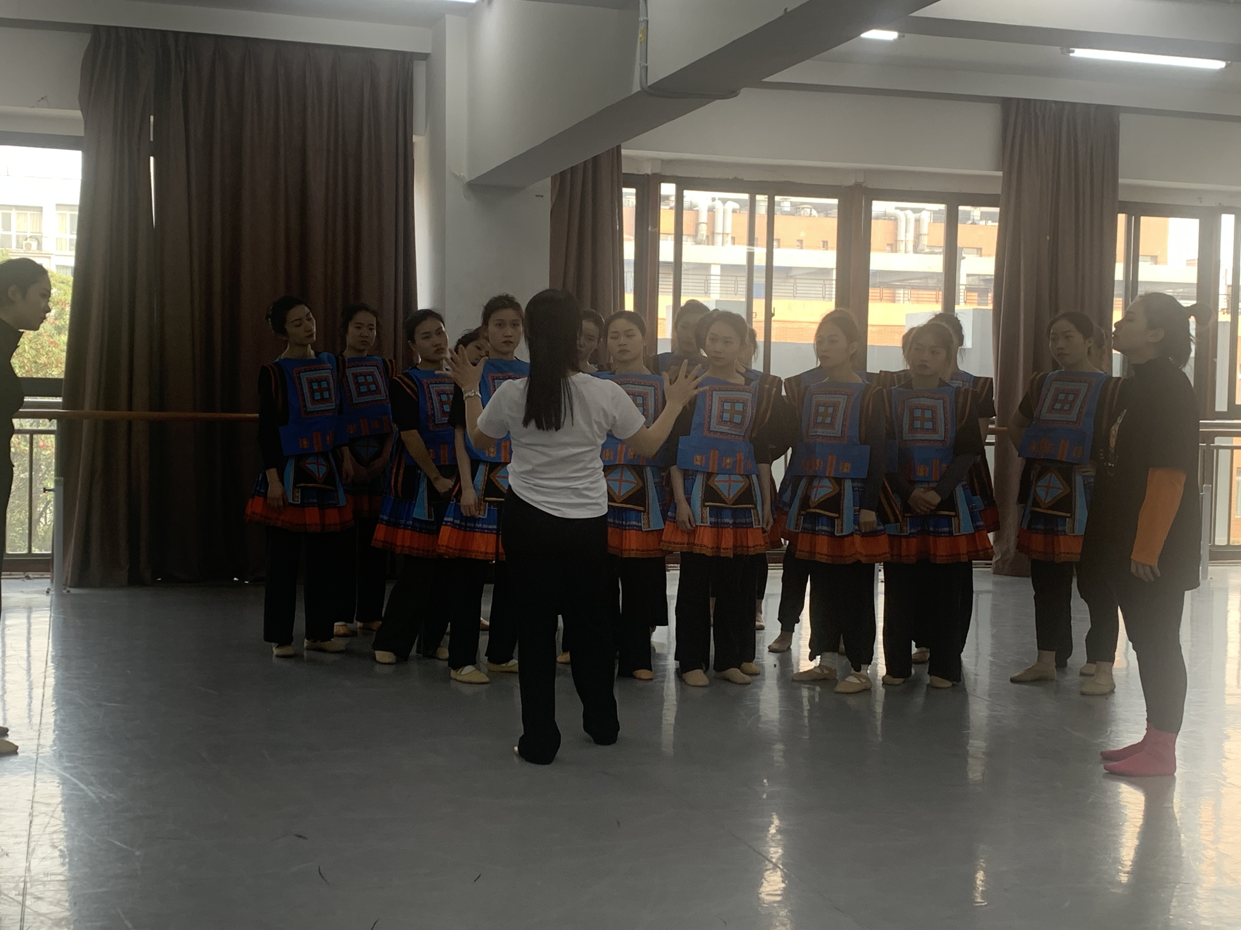 在此次指导中,农春雀教授不仅对公司参赛作品《哚娓》进行了细心且严苛的指导和训练。更为公司带来了优秀的新作品,以帮助我们舞蹈学专业能够不断的出新品,出精品。